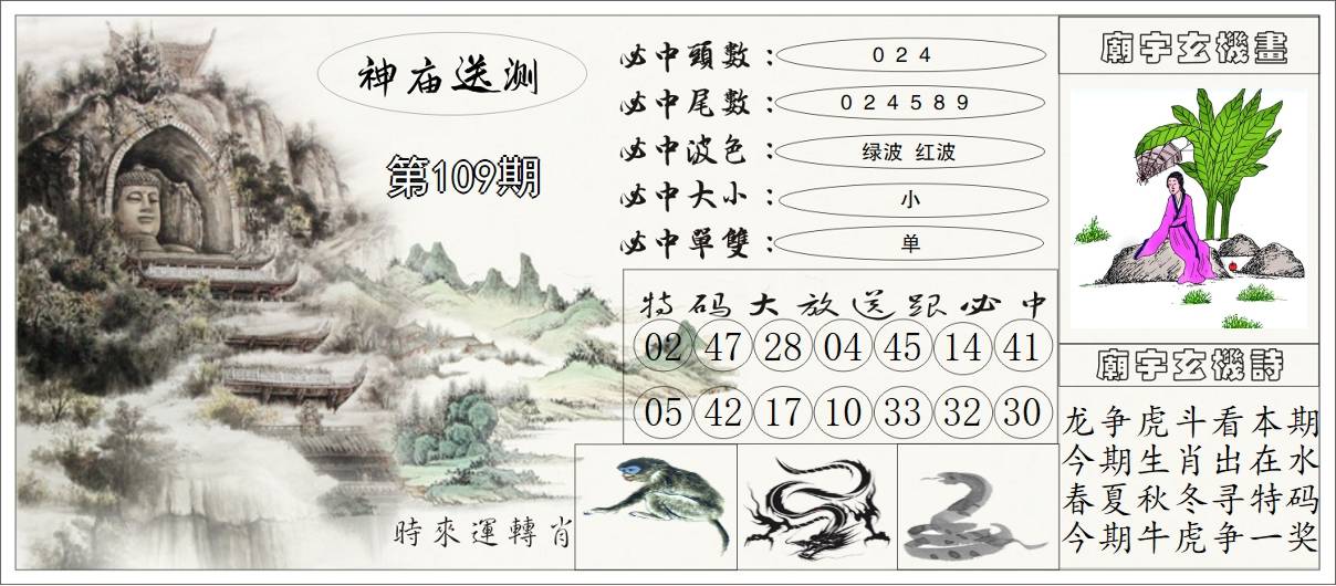 | 109期:⑤肖 | 猴鸡马猪蛇 | 0 |